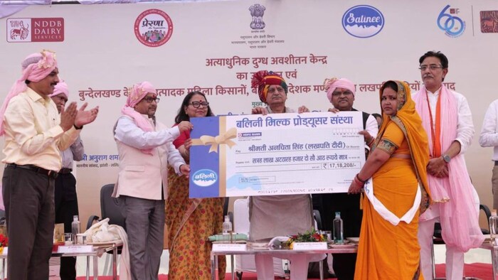80 हजार महिलाओं वाला बलिनी ग्रुप अब सिर्फ एक नाम नहीं रहा है, डेयरी सेक्टर में ये पहचान बन चुका है. बलिनी ग्रुप गांव-गांव से दूध इकट्ठा करने का काम करता है. अब एक बार फिर बलिनी ग्रुप ने एक बड़ी लकीर खींची है. ग्रुप ने झांसी में ही एक 40 हजार लीटर दूध की क्षमता वाला चिलर प्लांट तैयार किया है. केन्द्रीय पशुपालन और डेयरी मंत्री ने इसका उद्घाटन किया. इस मौके पर नेशनल डेयरी डपलवमेंट बोर्ड (एनडीडीबी) के चेयरमैन डॉ. मीनेश शाह भी मौजूद थे. बलिनी की महिलाओं ने बताया कि इस प्लांट की मदद से अब हम ज्यादा से ज्यादा गांवों से दूध जमा कर सेंगे. जमा करने के साथ ही फौरन दूध का ठंडा किया जा सकेगा.