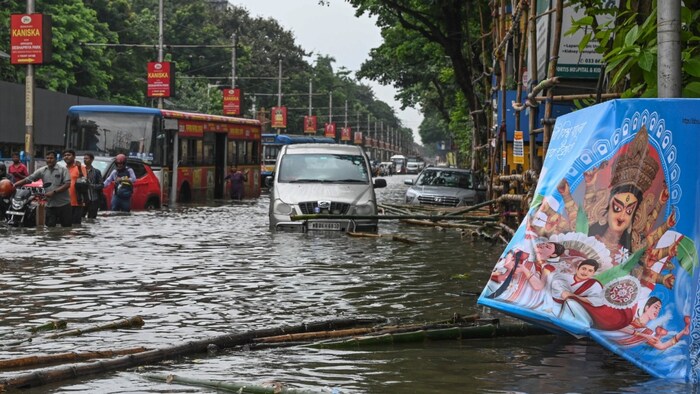बारिश की मार ऐसी पड़ी कि मुख्य सड़कों से लेकर गलियों तक पानी भर गया. लोग घरों से निकल ही नहीं पाए. गाड़ियां नाव की तरह बहती दिखीं, दुकानों में पानी भर गया, और दुर्गा पूजा के पंडालों में पानी घुसने से आयोजक परेशान हो गए.