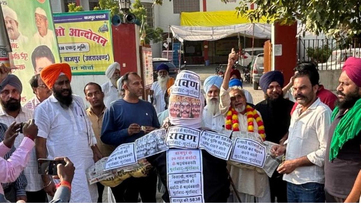 उधम सिंह नगर में लगभग पिछले तीन महीने के किसान भूमि बचाओ आंदोलन के तहत धरने पर बैठे हुए हैं. उन किसानों के राज्य सरकार को रावण की उपाधि देते हुए रावण के पुतले का दहन किया साथ ही प्रदर्शनकारी किसानों ने जल्द दी उनके भूमि अधिकार को बापस करने की मांग की है.