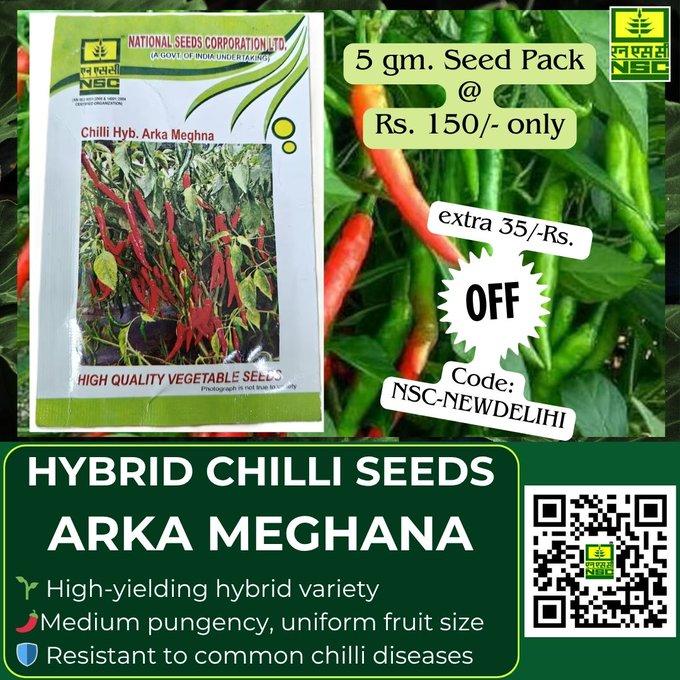 अगर आप भी मिर्च की उन्नत किस्म की खेती करना चाहते हैं तो हाइब्रिड मिर्च की अर्का मेघना किस्म की खेती कर सकते हैं. इसका 5 ग्राम का पैकेट फिलहाल 43 फीसदी छूट के साथ मात्र 150 रुपये में ऑनलाइन मिल जाएगा. ऐसे में आप इस बीज को घर बैठे ऑनलाइन मंगवा सकते हैं और अपने घर पर गमले और खेत में उगा सकते हैं.
