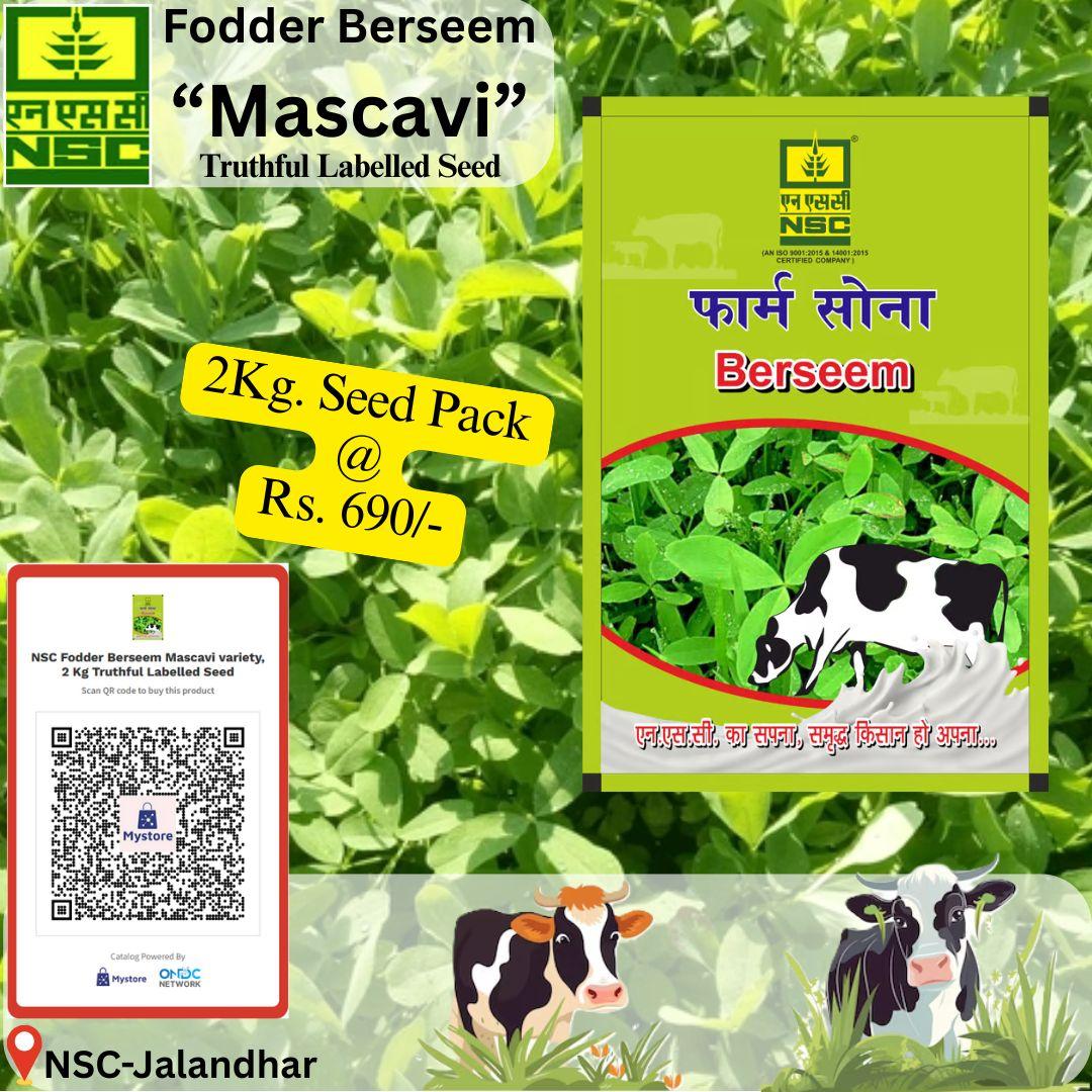 बरसीम की 'मसकावी' वैरायटीबरसीम रबी सीजन में बोई जाने वाली एक प्रमुख चारा फसल है, जो दलहन फसल की श्रेणी में आती है. बरसीम को चारा फसल का राजा भी कहा जाता है. बरसीम की बुआई अक्टूबर के आखिरी हफ्ते से लेकर नवंबर तक की जाती है. साथ ही किसान इस फसल की खेती कर चारा बेचकर भी अच्छी कमाई कर सकते हैं. वहीं, पशुओं के लिए बरसीम एक पौष्टिक आहार होता है. साथ ही पशुओं को ये चारा खिलाने से उनके दूध में बढ़ोतरी भी होती है. ऐसे में अगर आप भी पशुओं को खिलाने के लिए बरसीम की खेती करना चाहते हैं तो नीचे दी गई जानकारी की सहायता से इसके मसकावी किस्म के बीज मंगवा सकते हैं.