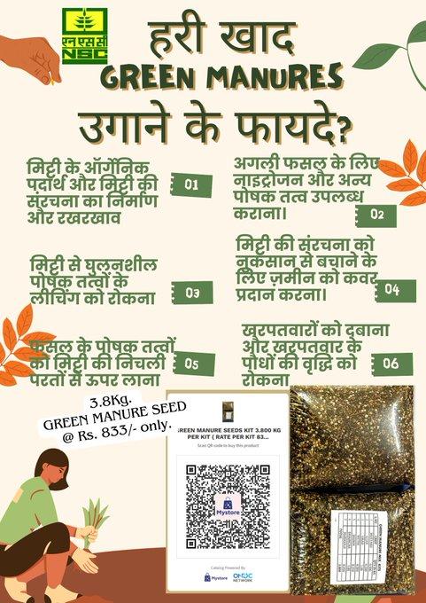 किसान महंगे रासायनिक और जैविक खाद खरीदने की जगह अपने खेत में हरी खाद लगा सकते हैं. इससे किसानों की बंपर उपज होती है. इसलिए किसान बड़े स्तर पर इसकी खेती कर रहे हैं. किसानों की सुविधा के लिए राष्ट्रीय बीज निगम ऑनलाइन हरी खाद के बीज के किट बेच रहा है. इस बीज को आप एनएससी के ऑनलाइन स्टोर से खरीद कर बंपर कमाई कर सकते हैं. साथ ही इसे ऑनलाइन ऑर्डर करके अपने घर भी मंगवा सकते हैं.