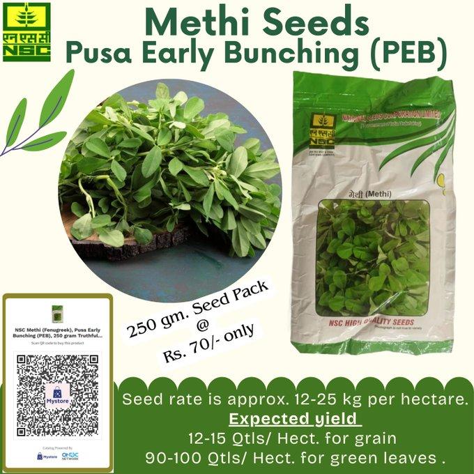 - राष्ट्रीय बीज निगम किसानों की सुविधा के लिए ऑनलाइन मेथी की उन्नत किस्म पूसा अर्ली बंचिंग का बीज बेच रहा है.