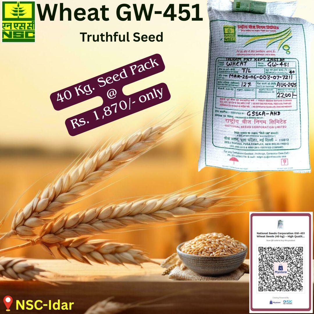 GW-451 गेहूं की एक खास किस्म है. गेहूं की किस्म GW-451 एक उच्च उपज वाली और रोग प्रतिरोधी किस्म है, जो कम पानी और देरी से बुवाई के लिए भी उपयुक्त है. यह किस्म जिंक और आयरन से भरपूर होती है और इसकी रोटी की क्वालिटी भी अच्छी होती है. वहीं, ये किस्म जल्दी तैयार हो जाती है. करें इसके बीज की कीमत की तो इसके 40 किलो का पैकेट फिलहाल 15 फीसदी छूट के साथ मात्र 1870 रुपये में राष्ट्रीय बीज निगम की वेबसाइट पर मिल जाएगा. इसे खरीद कर आप आसानी से गेहूं की खेती कर बेहतर मुनाफा कमा सकते हैं.