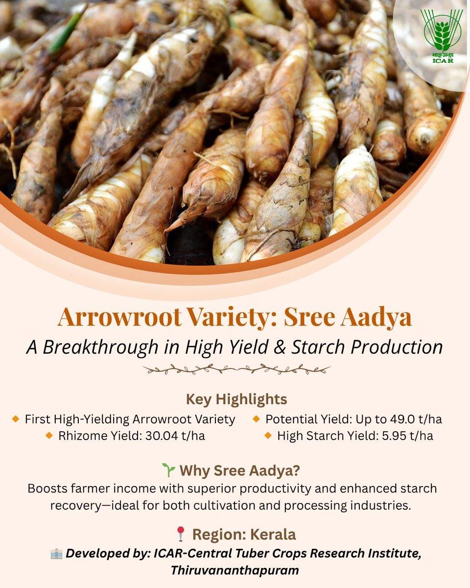 ICAR द्वारा दी गई जानकारी के अनुसार, 'श्री आद्या' अरारोट समय पर बुवाई और सिंचित परिस्थितियों के लिए उपयुक्त किस्म है, जो कि बुवाई के करीब 7 महीनों में पककर तैयार हो जाता है. बात करें इस किस्म से होने वाली पैदावार की तो, किसान इस किस्म से प्रति हेक्टेयर औसतन 30 से 50 क्विंटल तक पैदावार ले सकते हैं. इसके साथ ही अरारोट की इस किस्म की खासियत यह है कि ये यह बेहतर उत्पादकता और स्टार्च की ज्यादा रिकवरी के जरिए किसानों की आय बढ़ जाता है, जो खेती और प्रोसेसिंग, दोनों ही उद्योगों के लिए एकदम सही है.