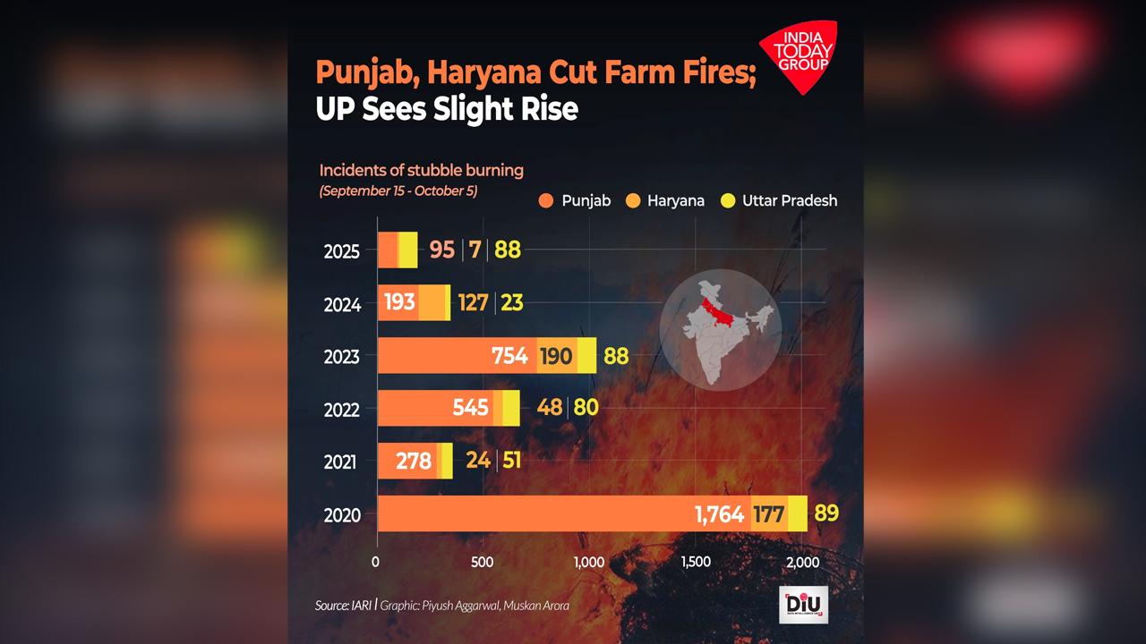 उत्तर भारत में सर्दियों से पहले बढ़ते वायु प्रदूषण के लिए पंजाब को वर्षों से जिम्मेदार ठहराया जाता रहा है. लेकिन इस बार एक नया ट्रेंड उभर कर सामने आया है. पश्चिमी उत्तर प्रदेश, खासकर मथुरा और अलीगढ़, पराली जलाने के मामलों में तेजी से आगे बढ़ रहे हैं, जबकि पंजाब ने पिछले छह वर्षों की सबसे स्वच्छ शुरुआती कटाई अवधि दर्ज की है.