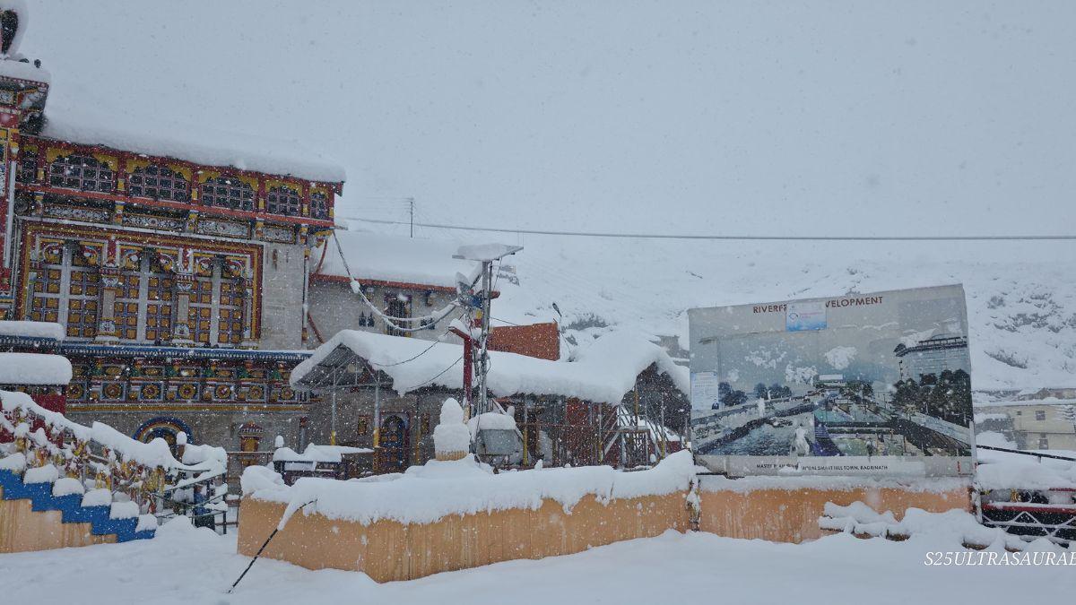 चमोली जनपद में पिछले तीन दिनों से लगातार बारिश और बर्फबारी का दौर रुक-रुक कर जारी है. वही, भगवान विष्णु के सर्वश्रेष्ठ धाम बद्रीनाथ में लगातार बर्फबारी हो रही है. यहां 1 फीट से अधिक बर्फ की मोटी चादर बिछ चुकी है. भगवान बद्री विशाल का मंदिर बर्फ से लद गया है और हर तरफ बर्फ की मोटी चादर नजर आ रही है, आसमान से बर्फ की फुहार गिरती हुई दिखाई दे रही है. हालांकि, पहाड़ इस समय जबरदस्त कड़ाके की ठंड की आगोश में आ गया है, क्योंकि ऊंचाई वाली जगह पर बर्फबारी तो निचली जगह पर बारिश होने से एक बार फिर से पहाड़ों में जबरदस्त ठंड का प्रकोप देखने को मिल रहा है.