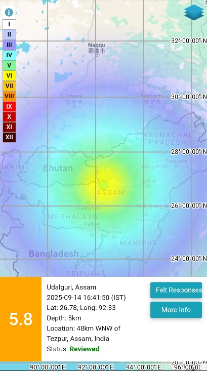 असम के उदलगुरी में आज 16.41 IST पर 5.8 तीव्रता का भूकंप आया: राष्ट्रीय भूकंप विज्ञान केंद्र