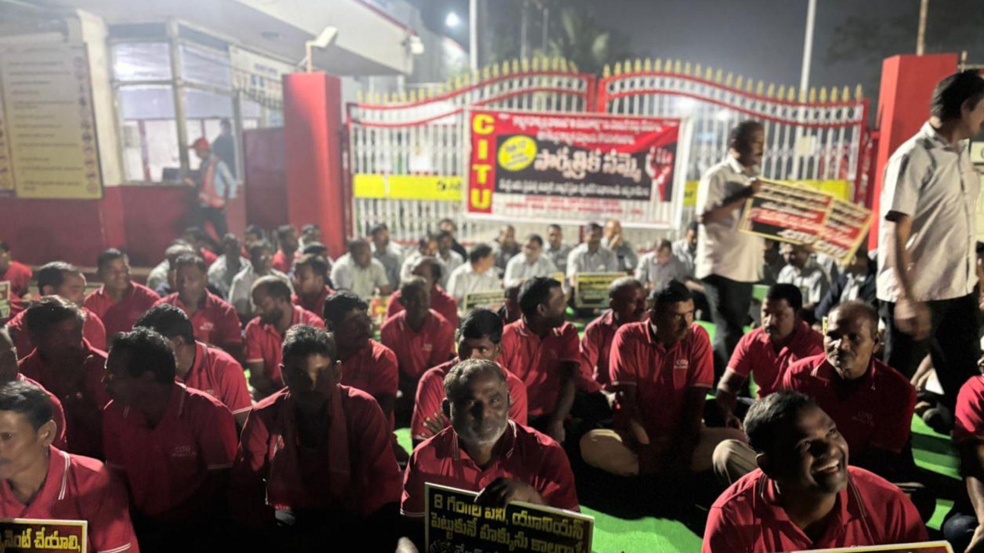 तेलंगाना के संगारेड्डी जिले में स्थित ABInBev (CBL) फैक्ट्री परिसर में मजदूरों ने बड़े पैमाने पर हड़ताल शुरू कर दी है. भारी संख्या में जुटे कर्मचारियों ने फैक्ट्री गेट पर घना और विशाल प्रदर्शन किया, जिससे परिसर के बाहर लंबी भीड़ देखी गई. मजदूरों ने अपनी विभिन्न मांगों को लेकर प्रबंधन के खिलाफ नारेबाजी की और कामकाज ठप कर दिया. हड़ताल के चलते उत्पादन और सप्लाई पर असर पड़ने की आशंका जताई जा रही है. वहीं, आंध्र प्रदेश के काकीनाडा पोर्ट पर भी कामकाज प्रभावित होने की खबर है.
