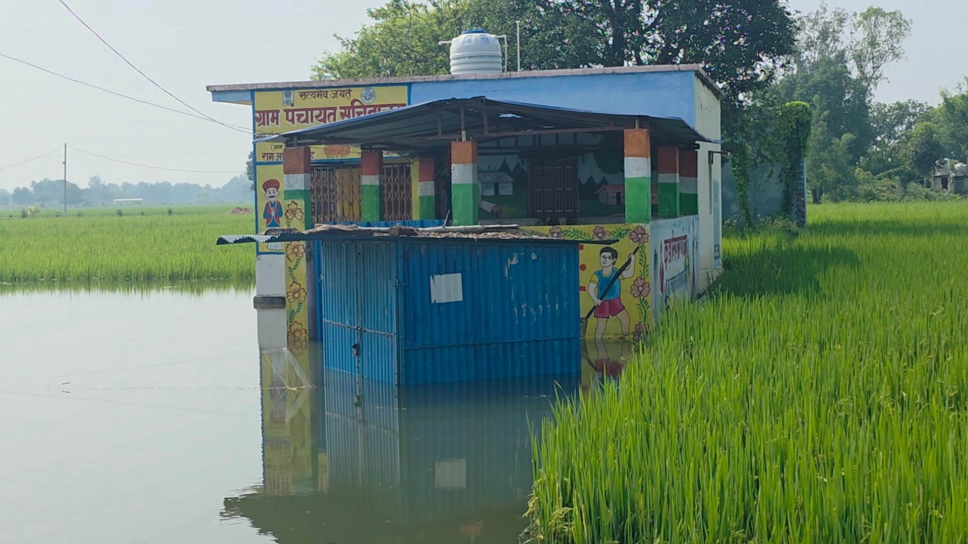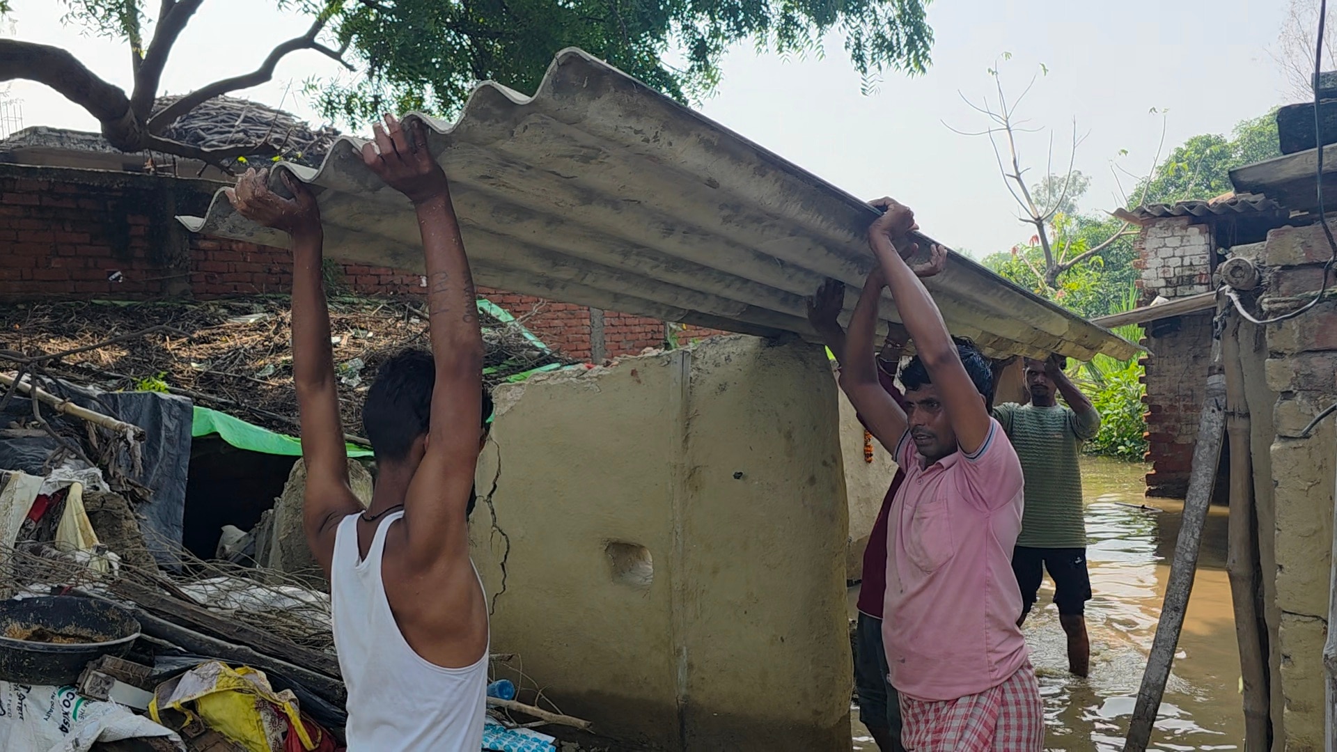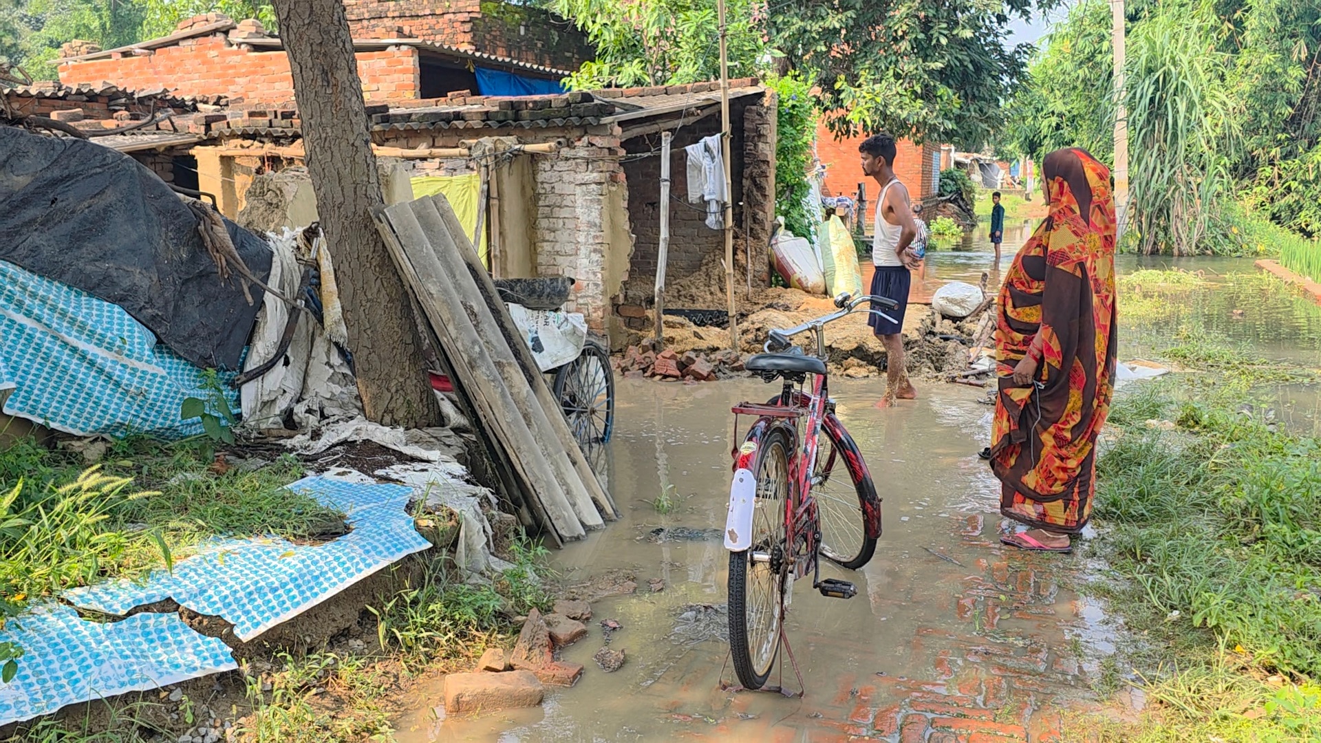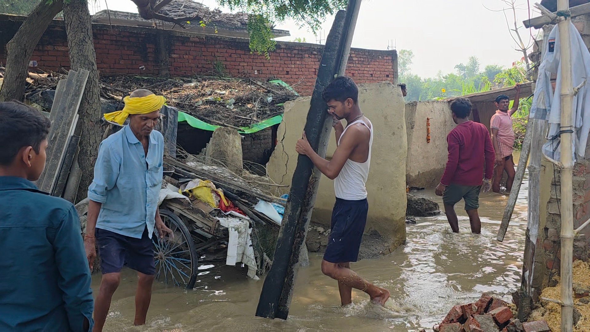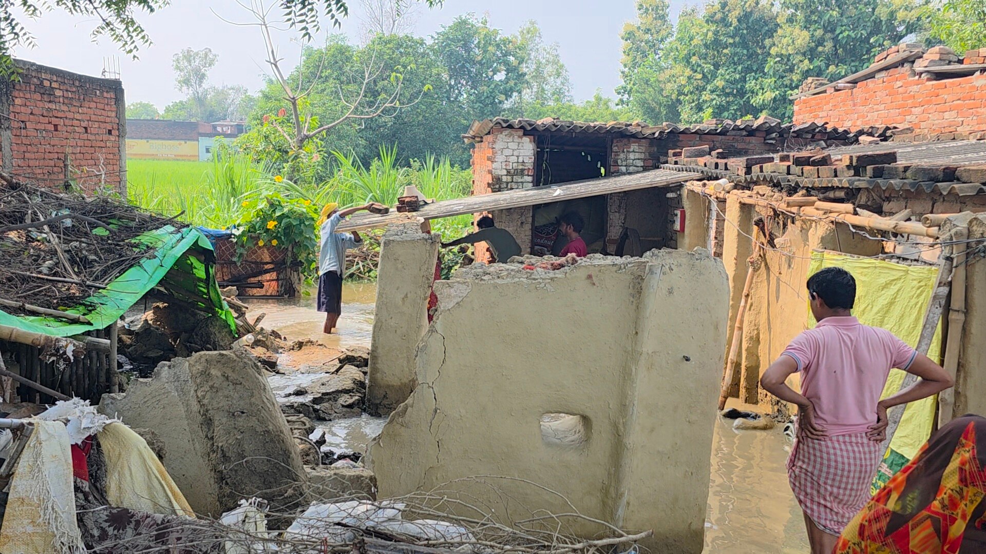 नियमताबाद ब्लॉक के चंदाईत गांव में बाढ़ के पानी से पंचायत भवन, प्राइमरी स्कूल और कई कच्चे मकान जलमग्न हो गए हैं. गोपाल मौर्य के कच्चे मकान की बारिश और पानी की वजह से दीवारें गिर गईं, हालांकि परिवार सुरक्षित रहा. उनके पशु गंभीर रूप से घायल हुए.