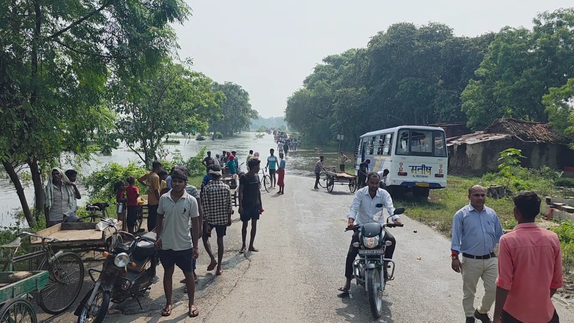 चंदौली के पंडित दीनदयाल उपाध्याय नगर से चकिया जाने वाली स्टेट हाईवे शिवनाथपुर के पास लगभग डेढ़ से दो फीट तक पानी भर गया है, जहां लोग जोखिम लेकर सड़क पार कर रहे हैं. पेयजल की भी गंभीर समस्या हो गई है.