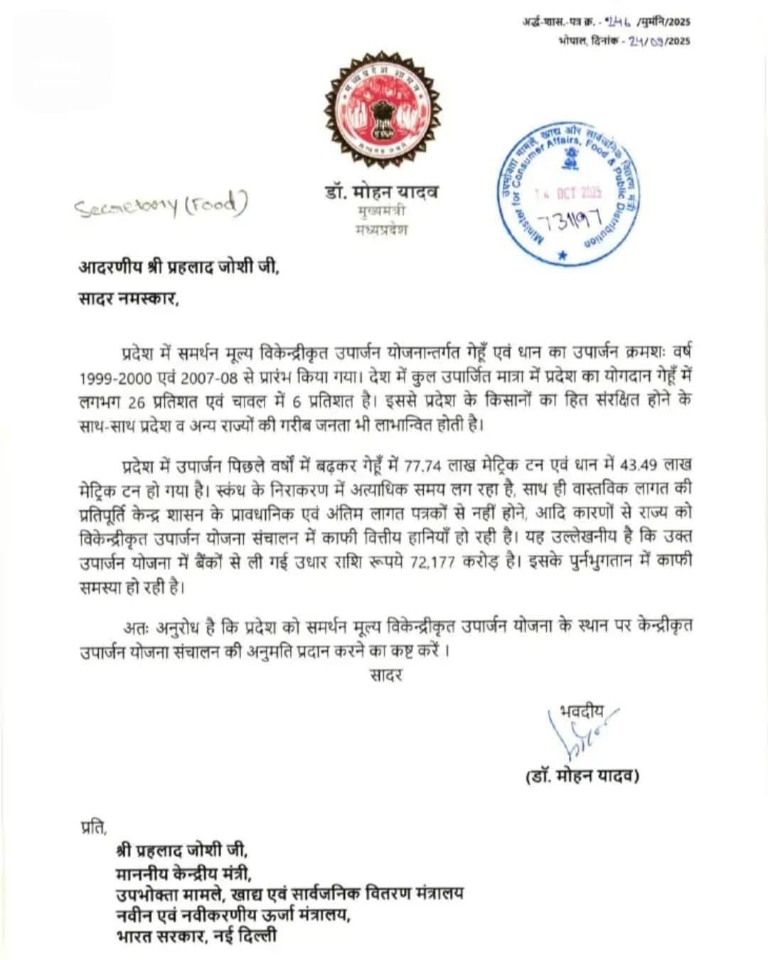 इस विवाद की शुरुआत मुख्यमंत्री डॉ. मोहन यादव के उस पत्र से हुई, जो उन्होंने केंद्रीय खाद्य मंत्री प्रहलाद जोशी को लिखा था. पत्र में मुख्यमंत्री ने राज्य के नागरिक आपूर्ति निगम (नान) पर चढ़े 77,000 करोड़ रुपये के भारी कर्ज का हवाला देते हुए कहा कि राज्य सरकार पर प्रारंभिक खरीद लागत का बोझ बहुत बढ़ गया है. उन्होंने अनुरोध किया कि केंद्र सरकार ही सीधे तौर पर धान और गेहूं की खरीद करे ताकि वित्तीय संकट से राहत मिल सके.