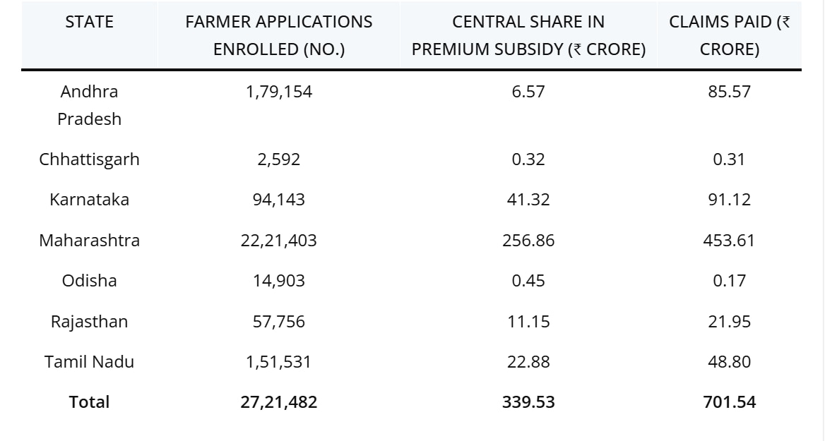 आवेदन जमा होने और क्लेम पेमेंट में महाराष्ट्र का हिस्सा सबसे ज्यादा रहा, उसके बाद कर्नाटक और आंध्र प्रदेश का नंबर आता है. यह स्कीम किसानों को प्राकृतिक आपदाओं और खराब मौसम की वजह से फसल के नुकसान से वित्तीय सुरक्षा देती है, जिसमें राज्य सरकारों द्वारा नोटिफाई किए जाने पर प्याज भी कवर होता है.