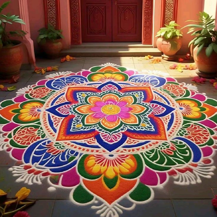 आप घर के मुख्य द्वार और पूजा स्थल पर रंगोली बना सकते हैं