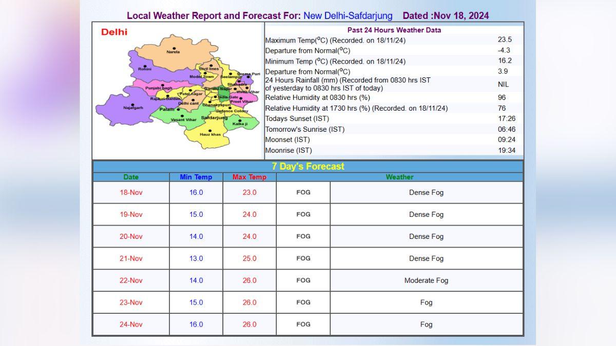 इस रविवार तक दिल्ली में न्यूनतम तापमान 13 डिग्री सेल्सियस से 16 डिग्री सेल्सियस के बीच रहेगा. वहीं, अधिकतम तापमान भी अब काफी कम हो गया है, जो 24 से 26 डिग्री सेल्सियस के बीच रहेगा. इसके अलावा दिल्ली में गंभीर प्रदूषण के चलते लोगों को परेशानी झेलनी पड़ रही है. दिल्ली में खतरनाक प्रदूषण के चलते GRAP-IV लागू कर दिया गया है, जिसके बाद 12वीं कक्षा तक के छात्र-छात्राएं स्कूल नहीं आ सकेंगे, इनकी क्लास ऑनलाइन चलेंगी. एनसीआर के कई शहरों में भी प्रदूषण गंभीर से अति गंभीर श्रेणी में पहुंच चुका है.